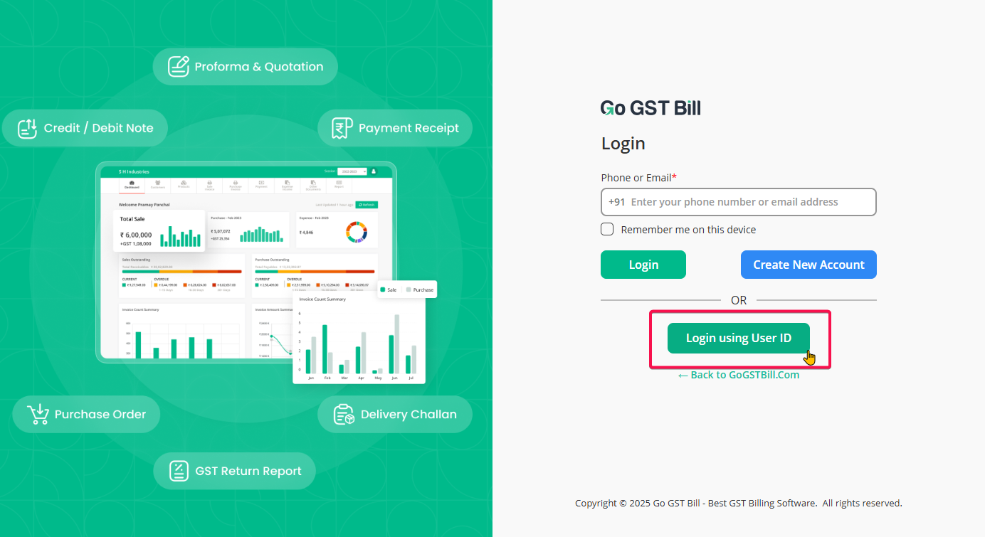 Note: You must have a verified email ID added to your Go GST Bill account to use this method.