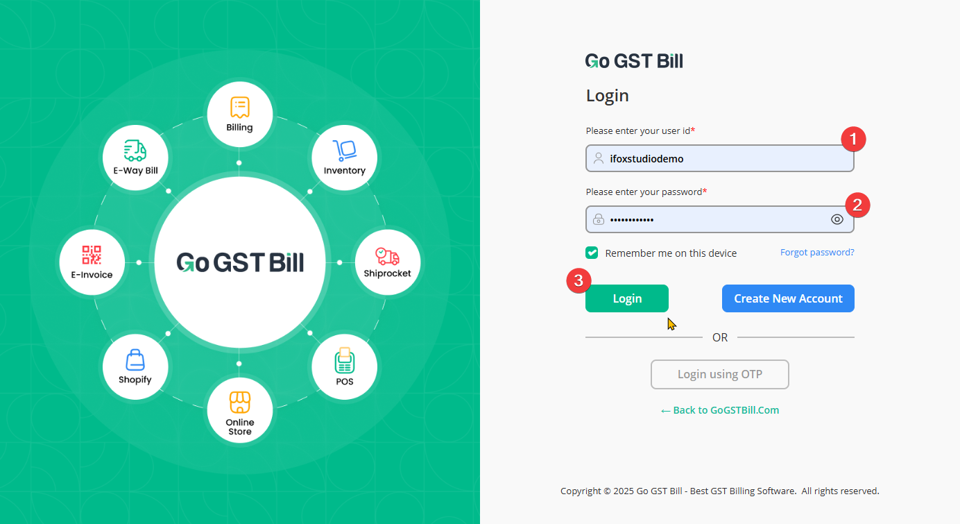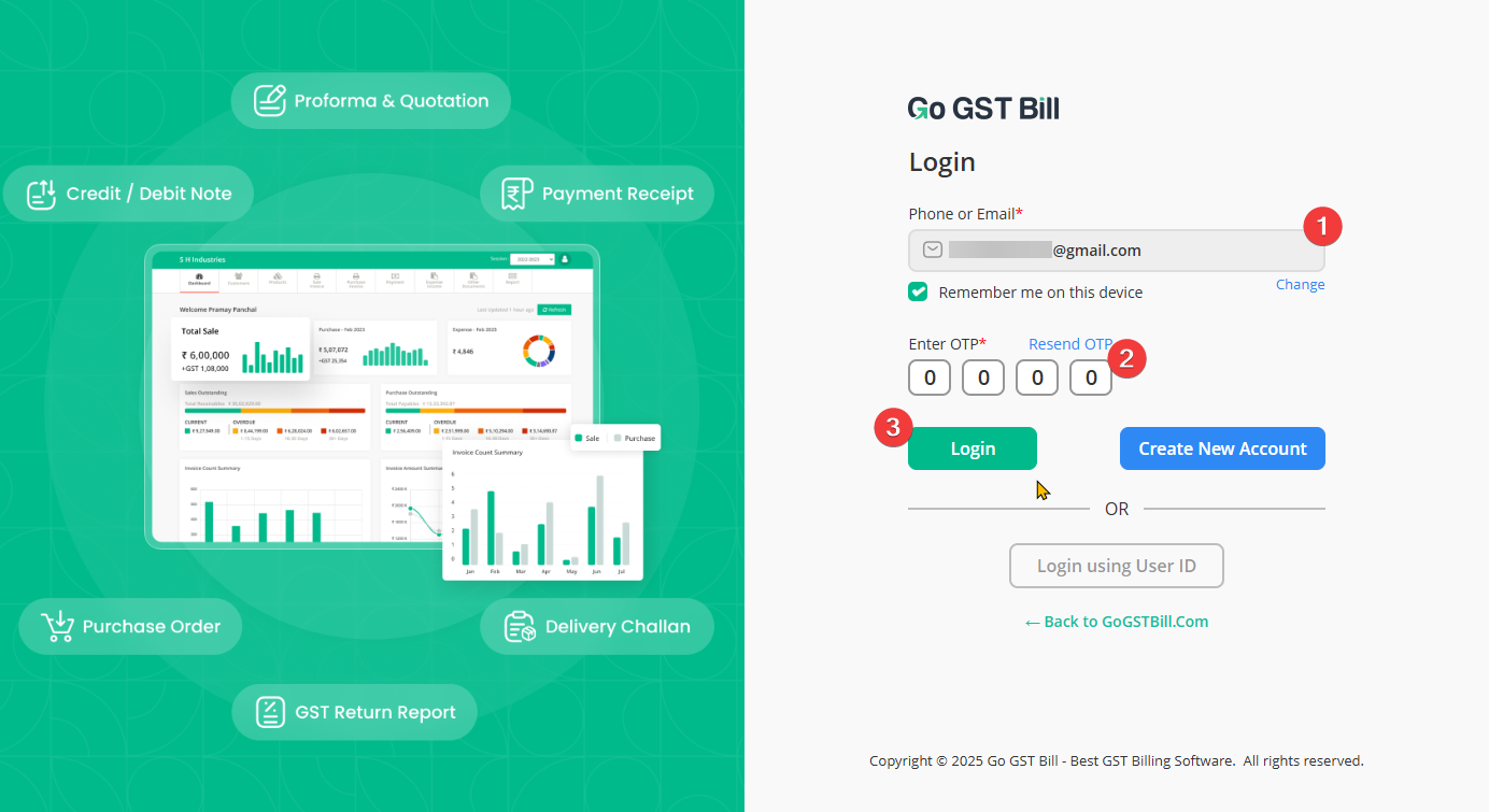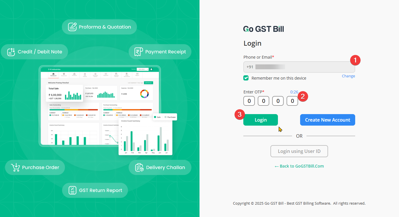 Step 3: Enter the OTP and you will be logged into your Go GST Bill account.