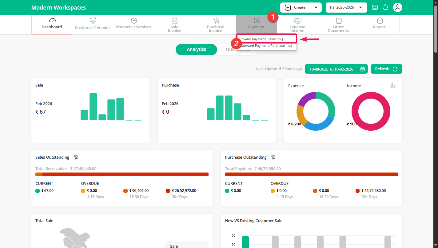 Step 1 : Go to Payment Menu & select Inward Payment from Sub Menu.