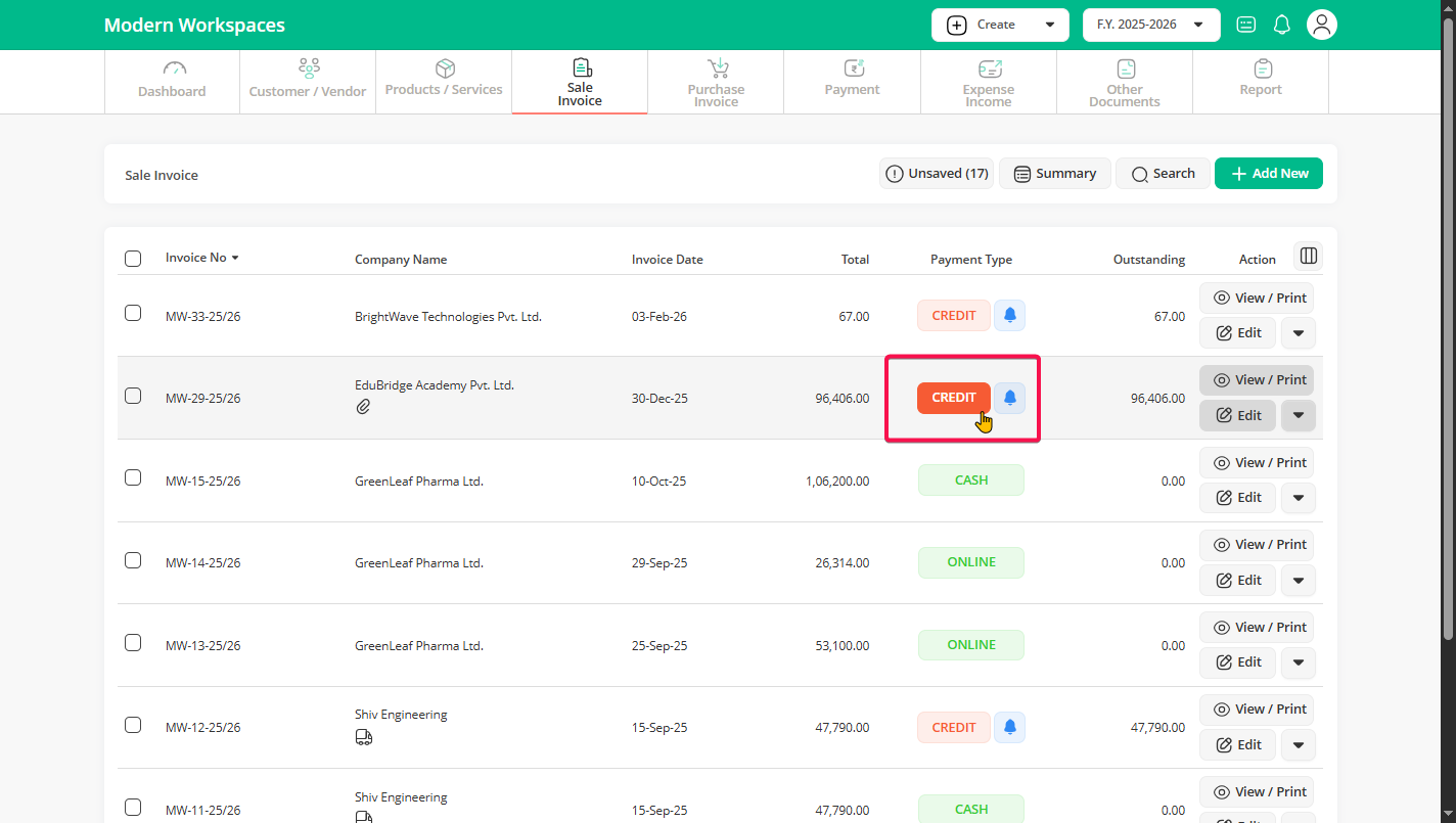 Method 2: From “Sale Invoice” or “Purchase Invoice” page