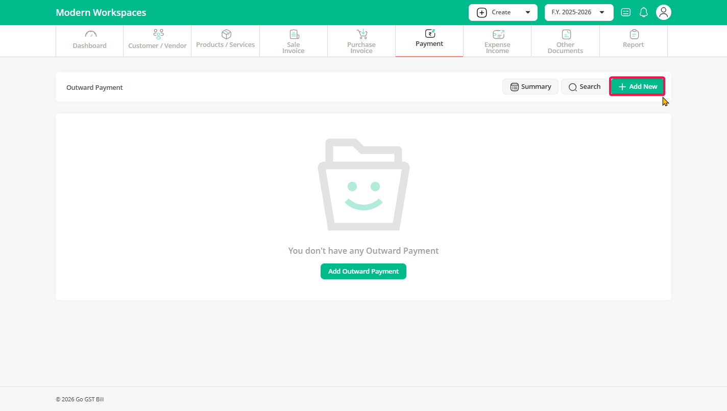 Step 2 : Click on “Add New” Button To add new Payment Receipt