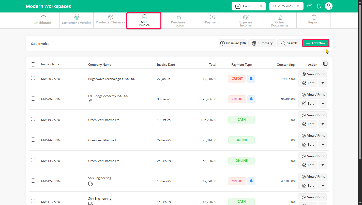 • After checking the total amount, use the round off option to adjust the final invoice value if needed.