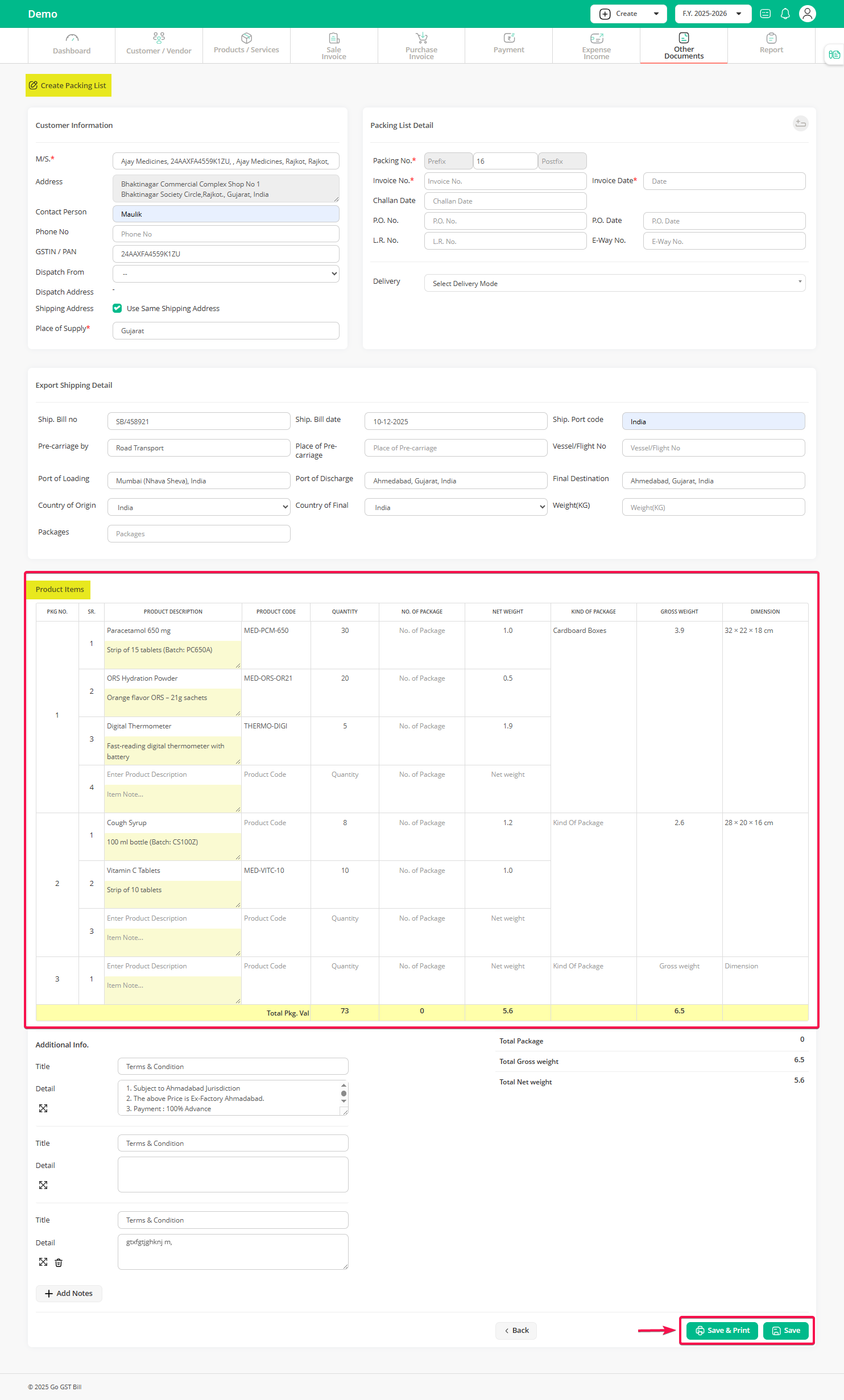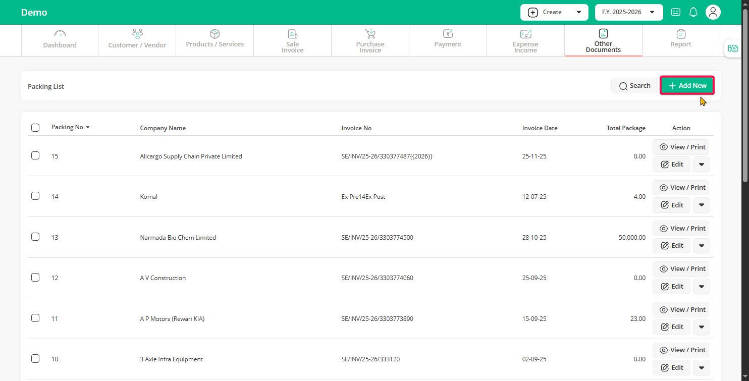With Go GST Bill, you don’t need to create it from scratch. Just select the invoice, and your packing list will be ready in seconds — with all details auto-filled.