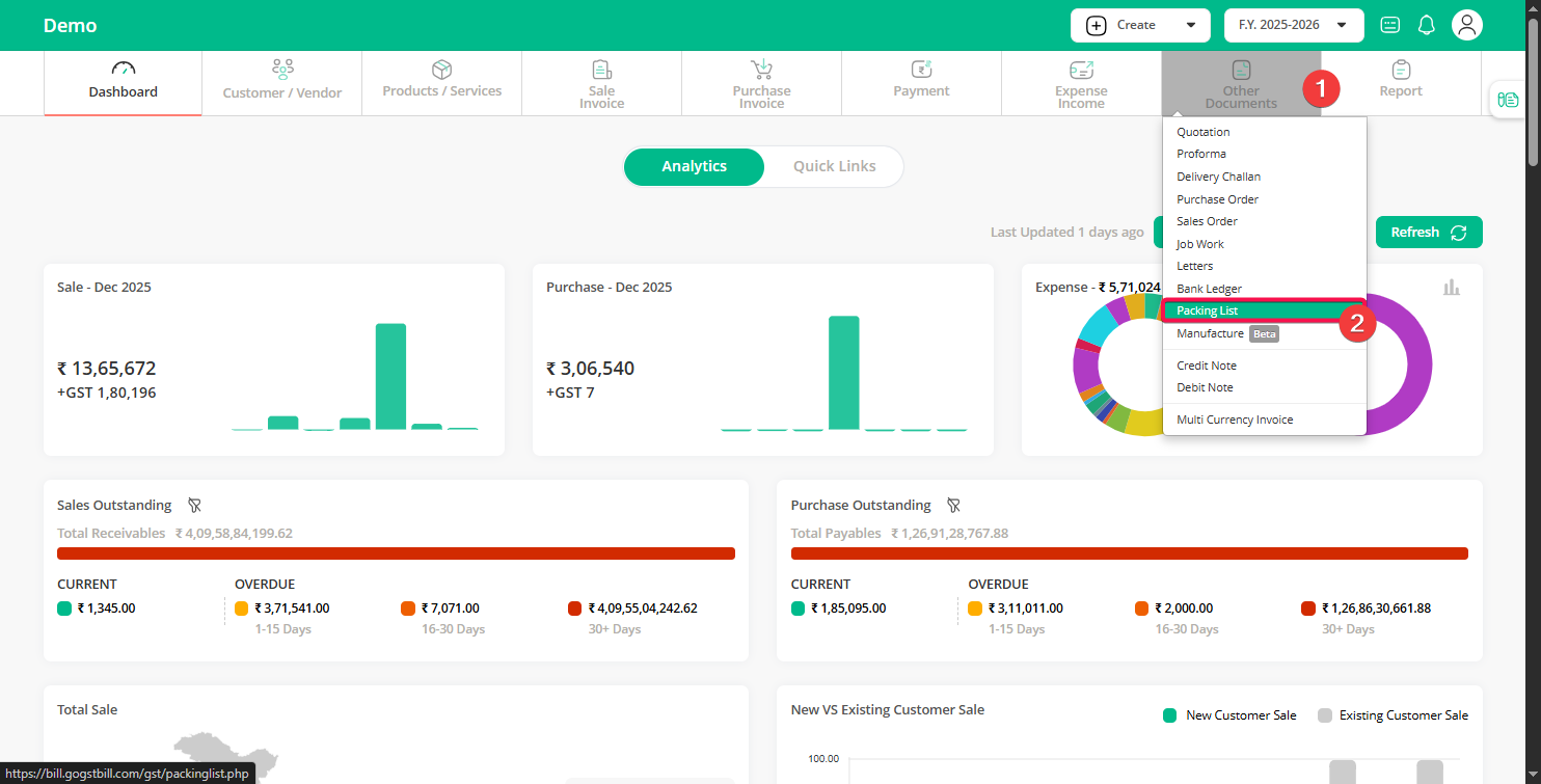 Step 1: Go to the “Dashboard”, click on “Other Documents”, and then click on the “Packing List” option.