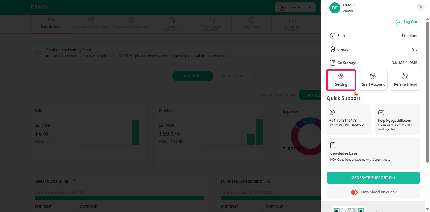 Step 1: Click on the user profile icon from the top-right bar and then click on the “Settings” option.