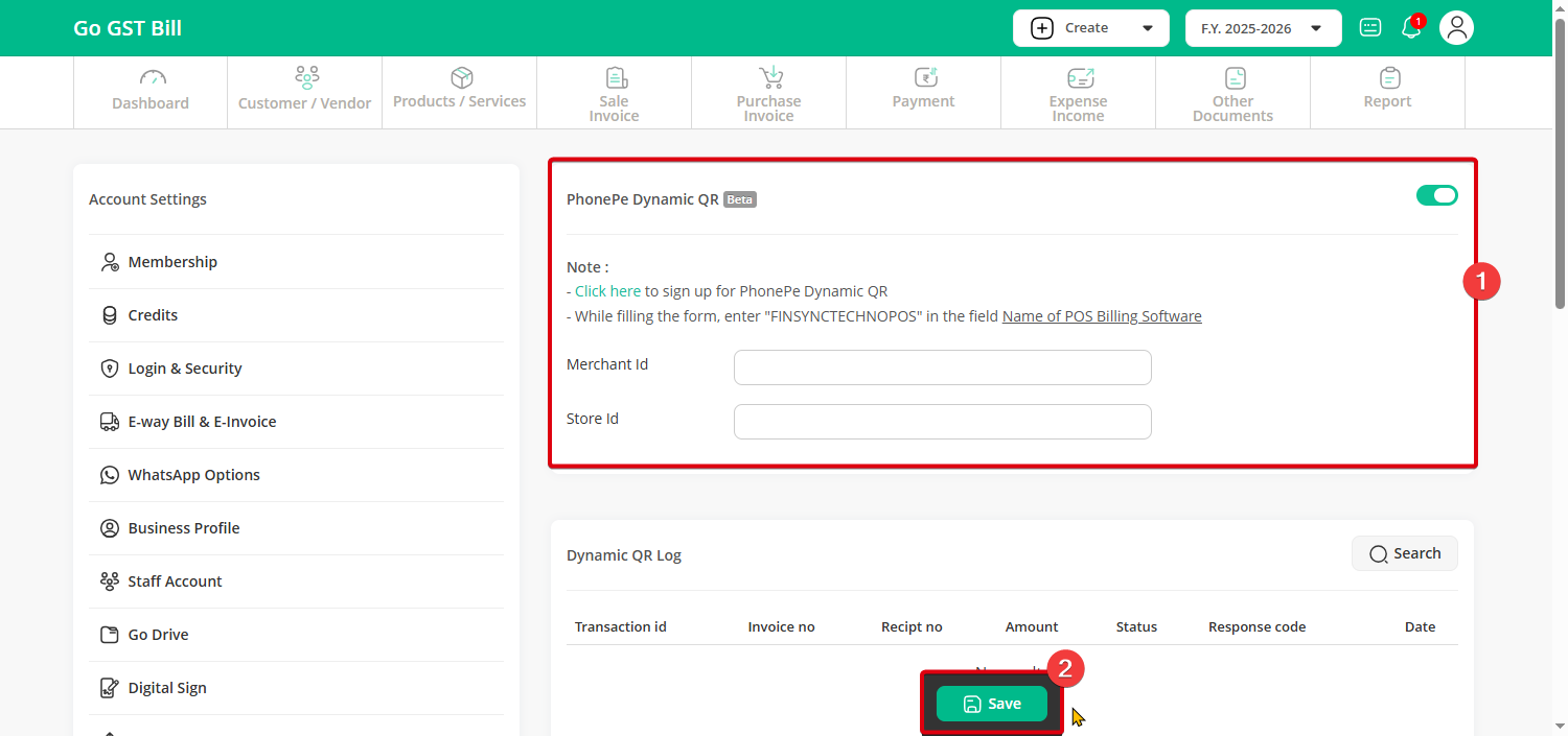 Step 4: Enter your Merchant ID and Store ID, click on “Save”, and your PhonePe Dynamic QR will be ready to use.